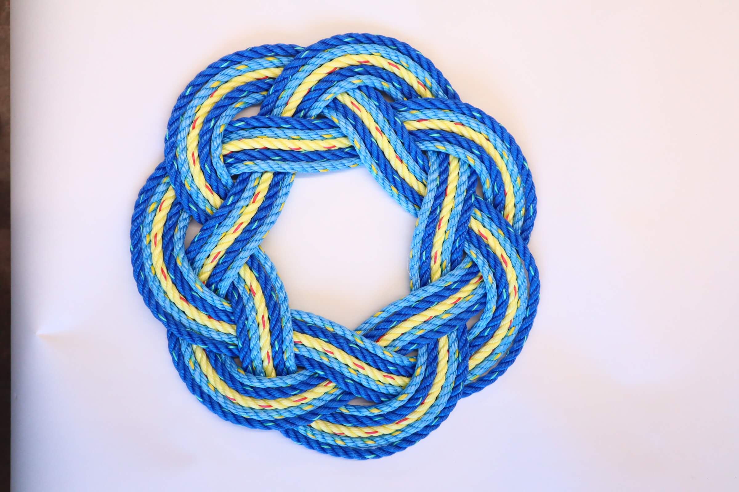 The Starry Night Swirl Wreath uses colors that represent the moonbeams and starlight dancing across velvet nighttime waves, a mirroring of the sky. Handcrafted in Nova Scotia, Canada on the shores of the Bay of Fundy.