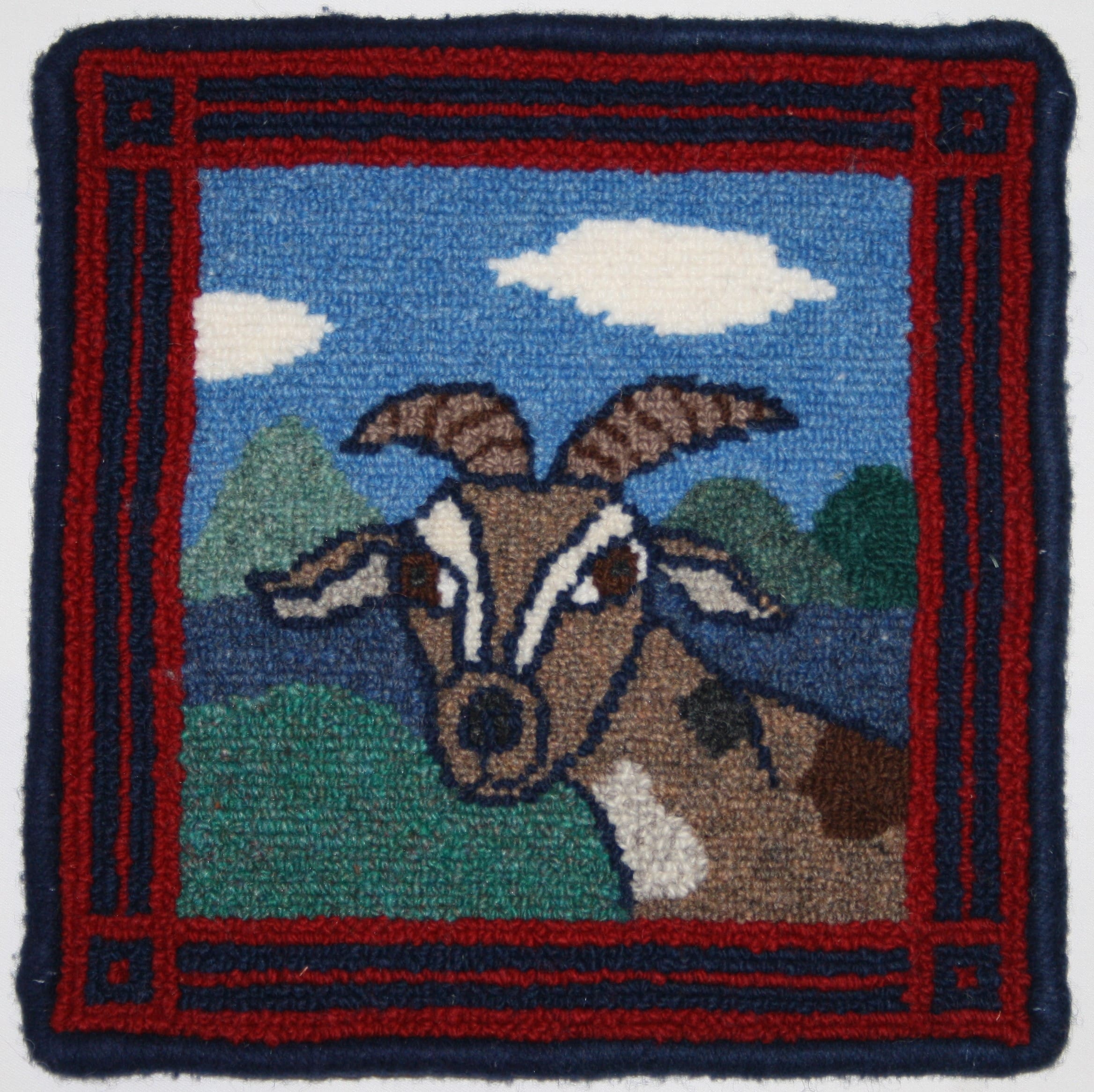 Included in Kit: Image on evenweave backing, Instructions, Wool, Frame, Handmade Hook, Cord and Binding.